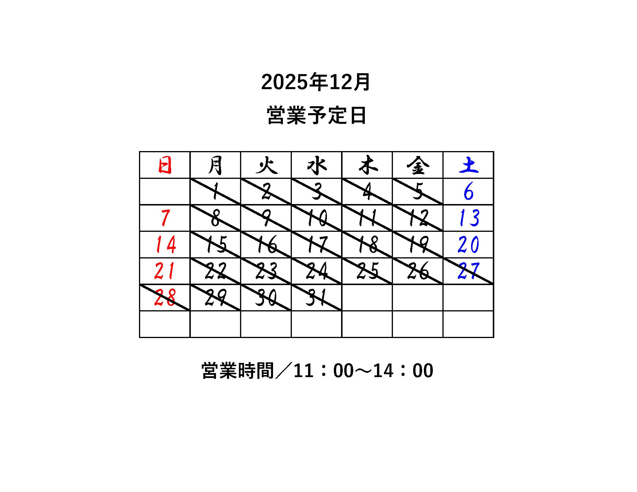 ピッツェリア ラコルト 令和7年12月定休日のお知らせ