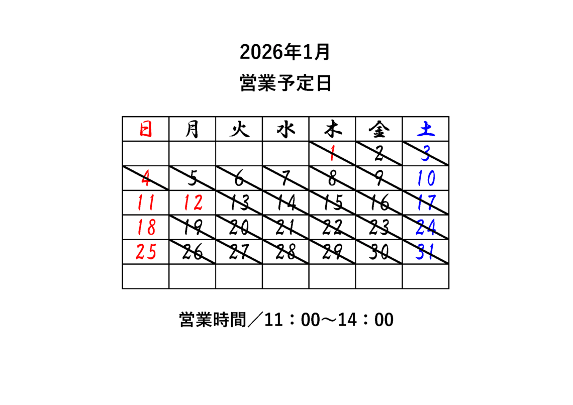 名主の館 2026年1月営業日のお知らせ