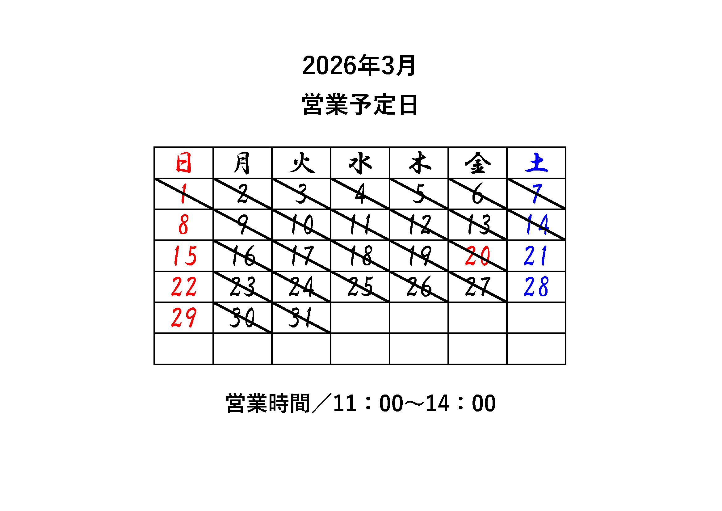 名主の館 2026年3月営業日のお知らせ