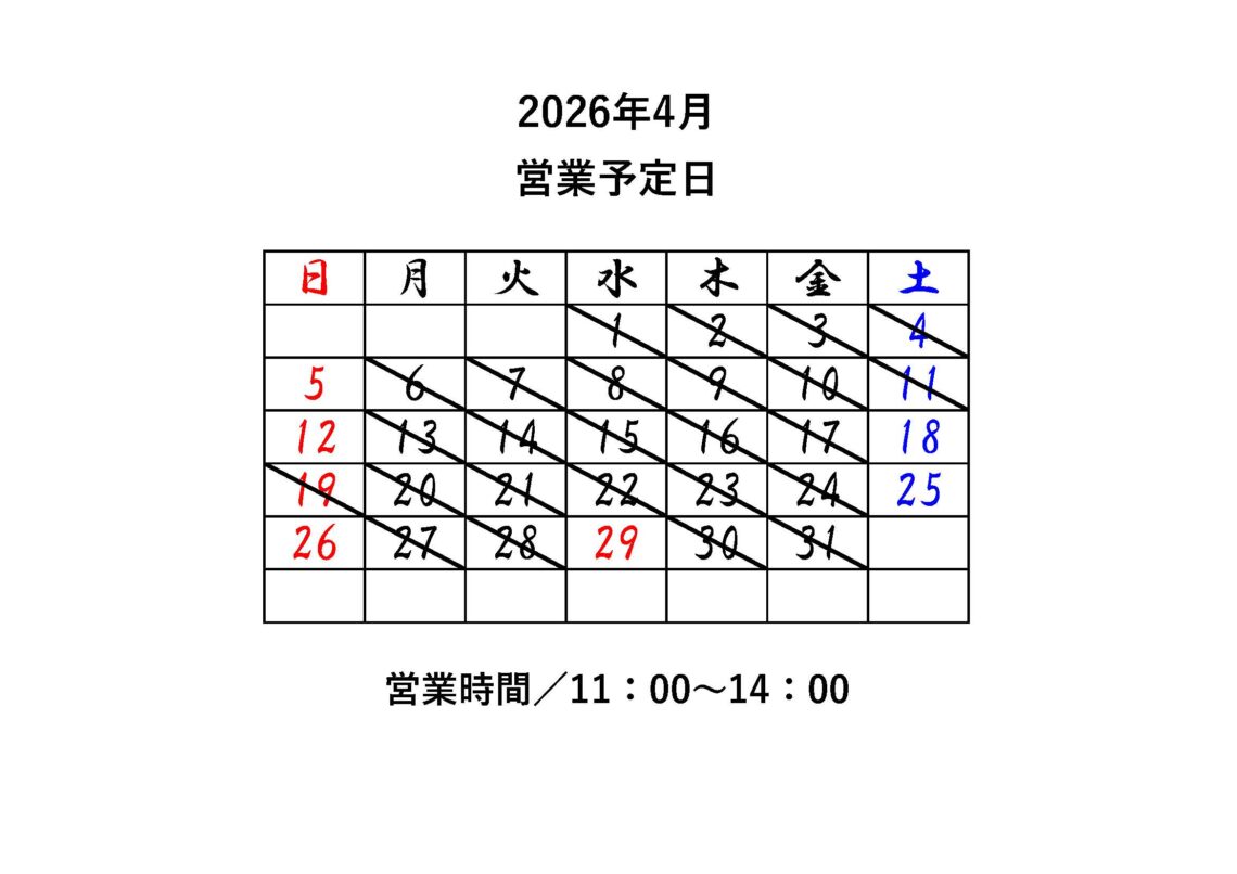 名主の館 2026年4月営業日のお知らせ