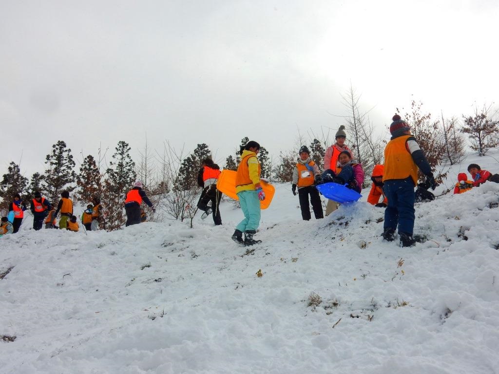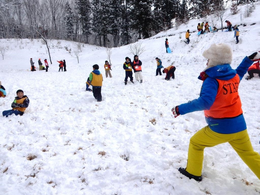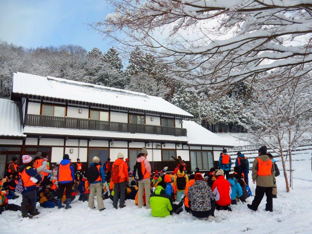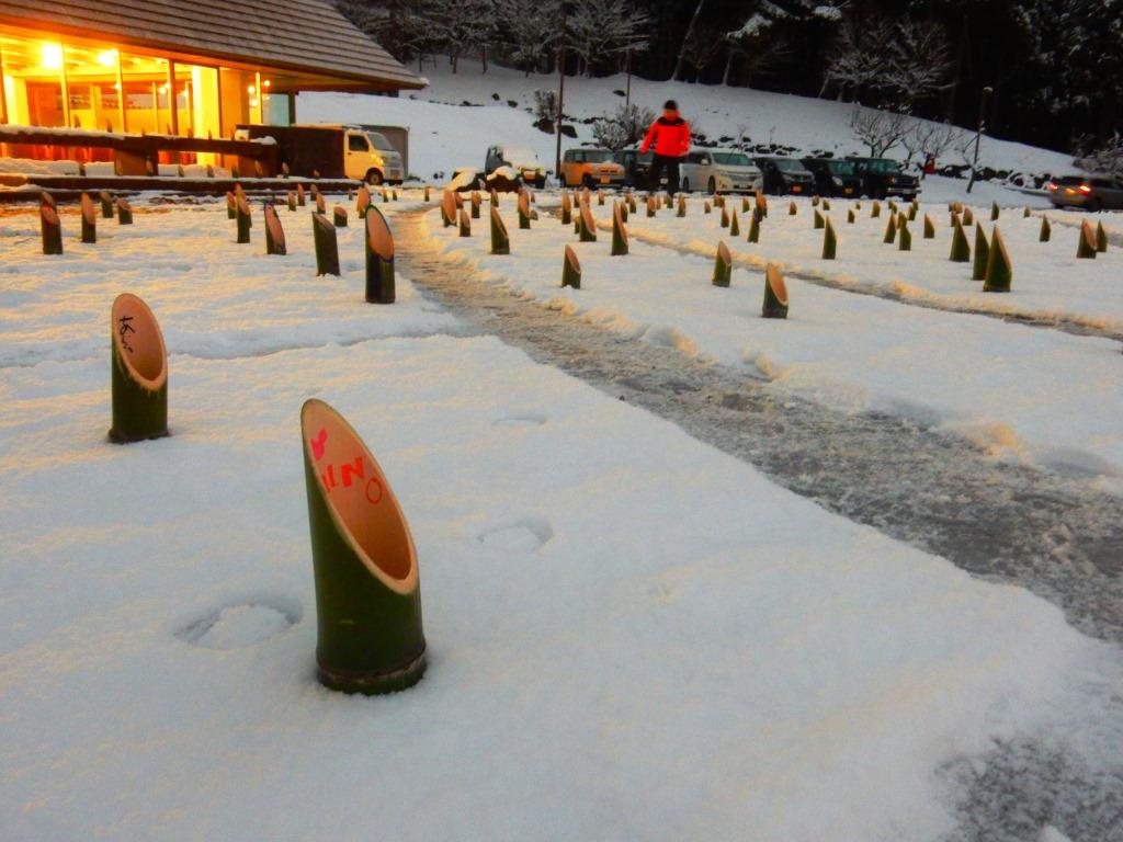 昨日からの湿った雪の影響で、地面だけでなく木々も真っ白に染まった3日目の朝。子ども達の願いが届きお天気にも恵まれ、待ちに待った雪遊びです。ただ雪があるだけで、子どもの遊びは無限に広がり、時間も寒さも忘れて楽しんでいました。また、昨日作った竹灯籠の設置は、規則性なく散らばるように、広がるように・・・。約150個の灯籠に灯りが灯ると、とても幻想的な光景が広がりました。そして、最終夜の締めくくりは、恒例のキャンプファイヤーで大盛り上がり。楽しい時間はあっという間に過ぎてしまいますね。