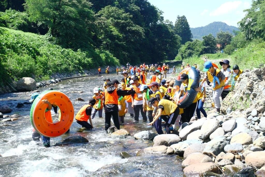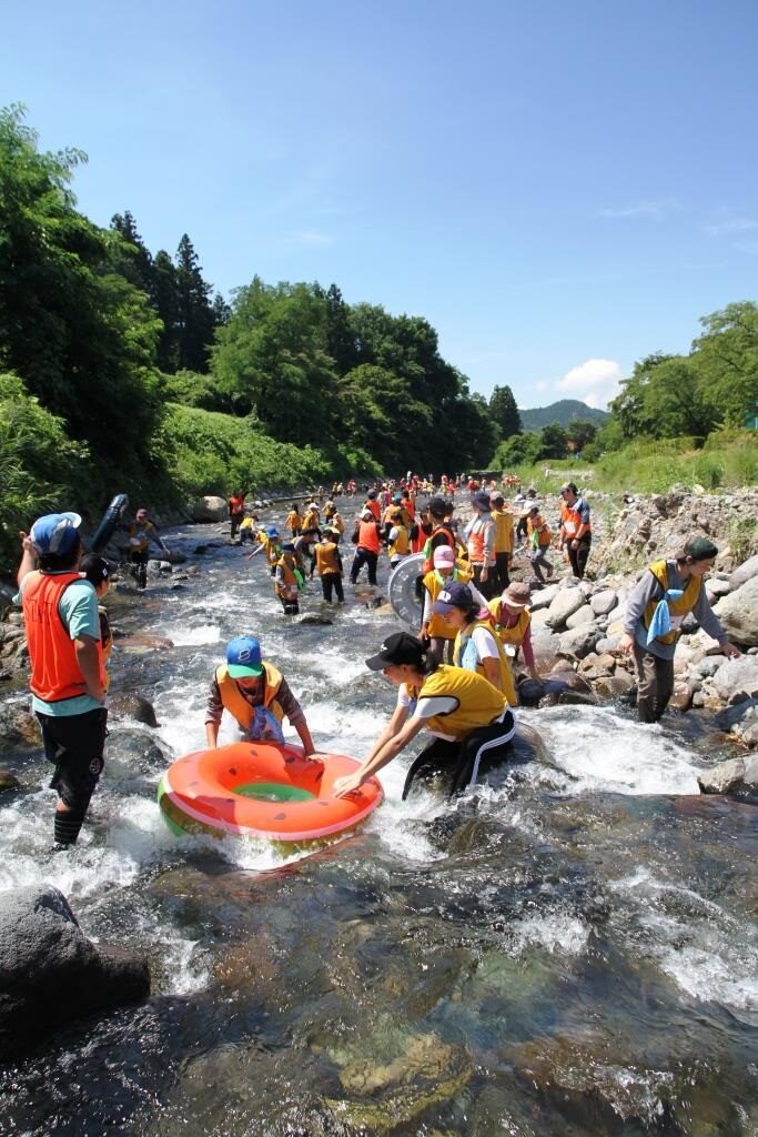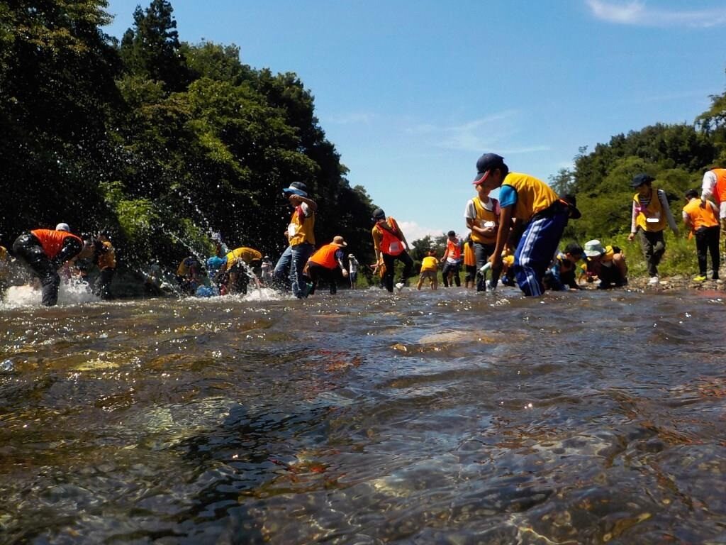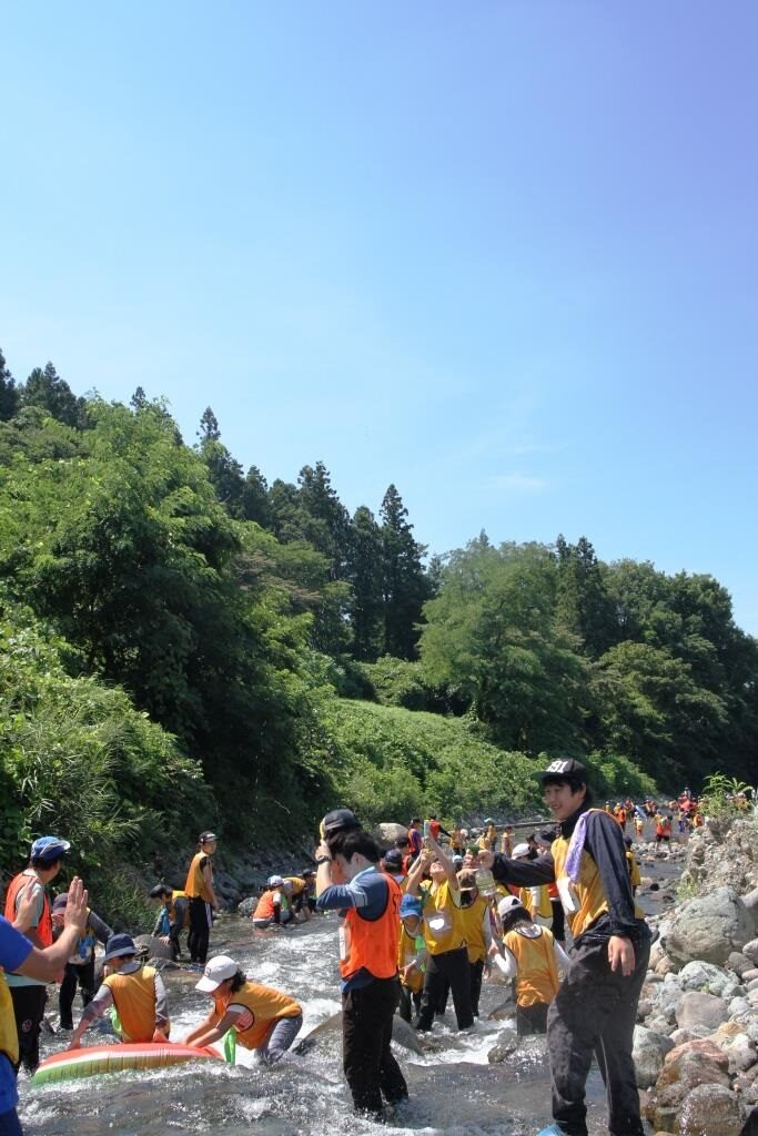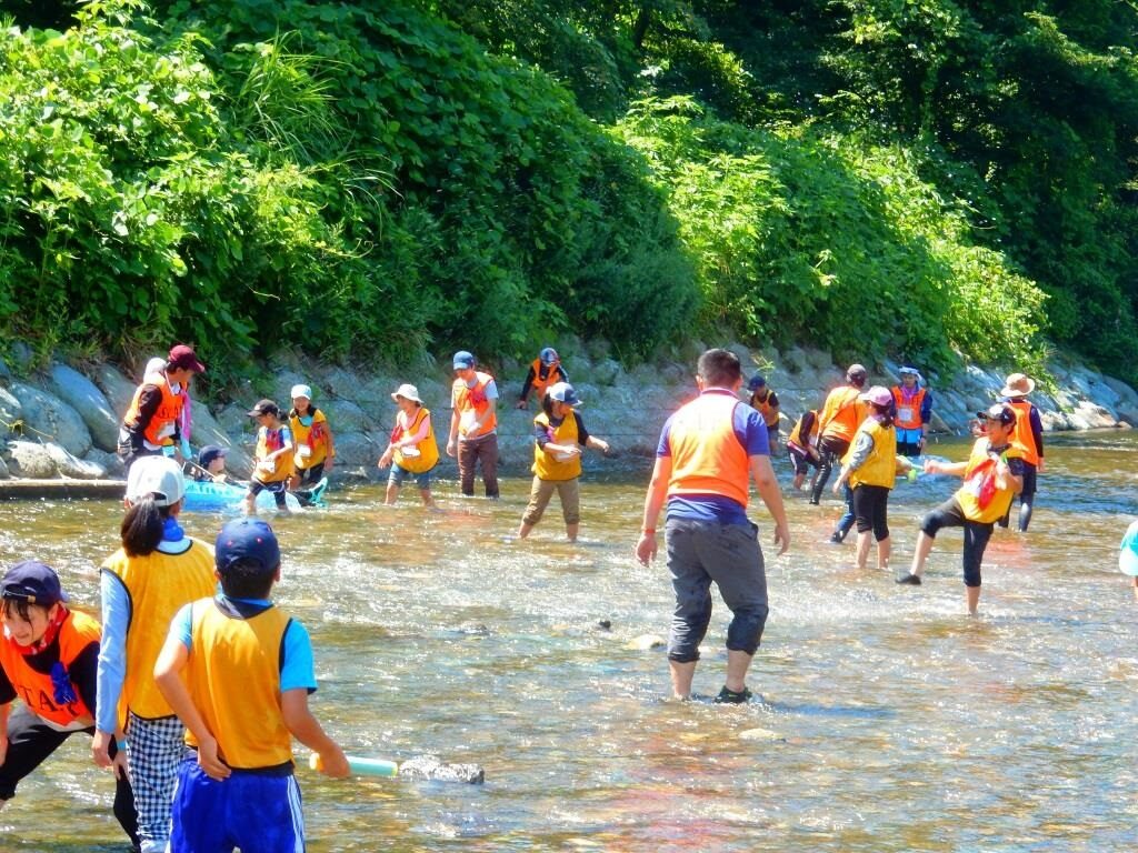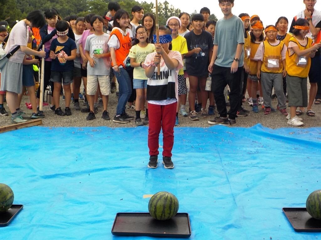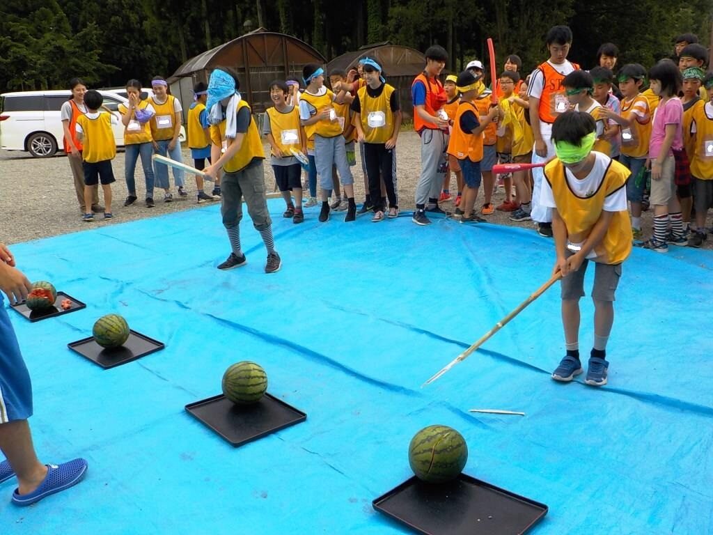 連日の猛暑に疲れ気味かと思いきや、みんな目を輝かせている3日目の朝。それもそのはず。今日は待ちに待った川遊びの日です。やはり川場の夏と言えば「川遊び」ですね。川までの道中も軽やかな様子で、きっと川遊びだけでなく、村内へ出かける楽しみもあったことでしょう。冷たい川場の清流で、思いっきりはしゃいだ後には、スイカ割りも楽しみ、川場の夏を満喫しました。