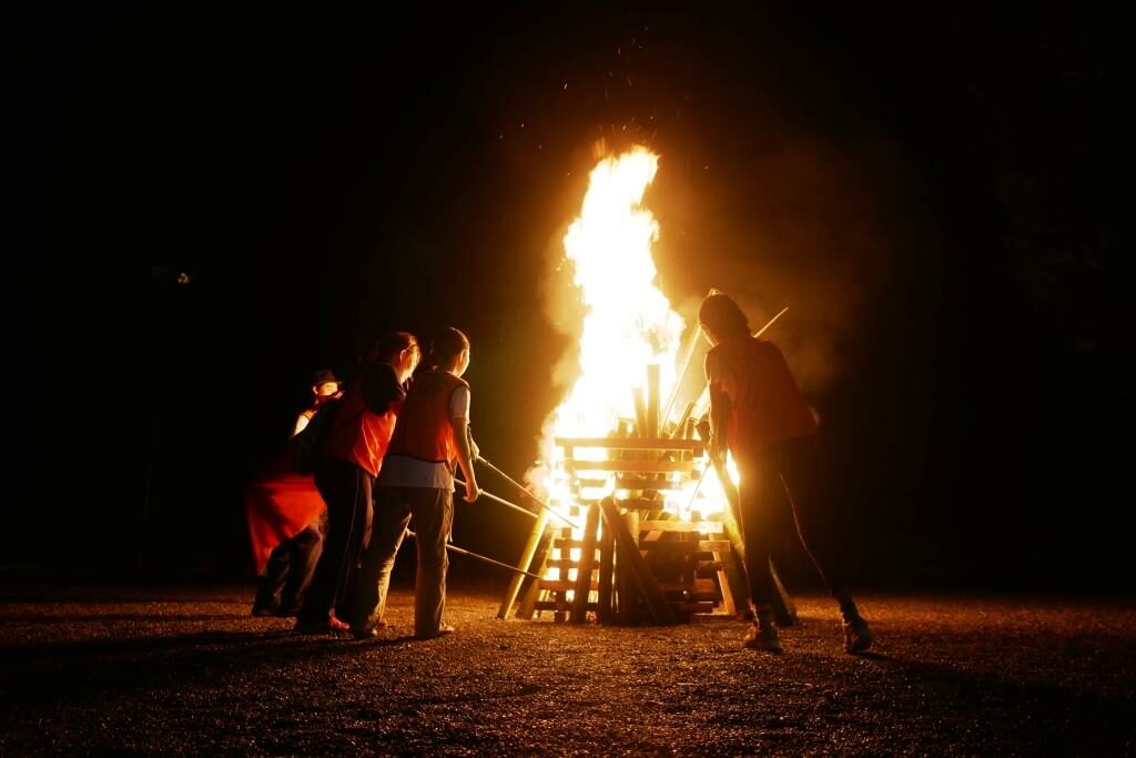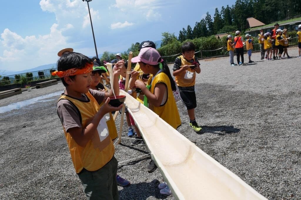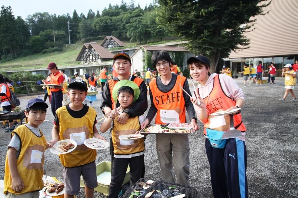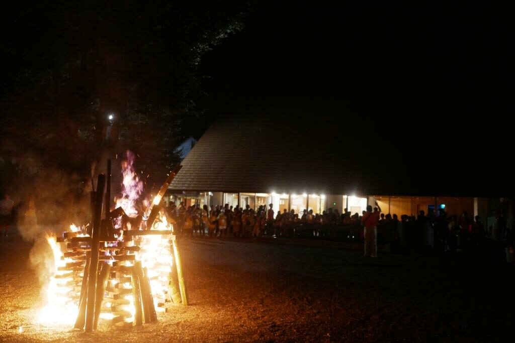 あっという間の4日目。楽しい時間が過ぎるのは、早いものですね。今日は、「鱒の掴み取り」「流しそうめん」「バーベキュー」など、夏らしいお楽しみが盛りだくさんです。そして、ここまで雨に降られなかったものの、夕方から雷雨となり、フィナーレのプログラムが心配されました。しかし、雨上がりと同時に大きな虹がかかるというサプライズもあり、皆で考えた出し物やキャンプファイヤーなど、最終夜にふさわしい感動のひと時となりました。