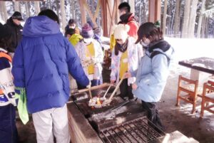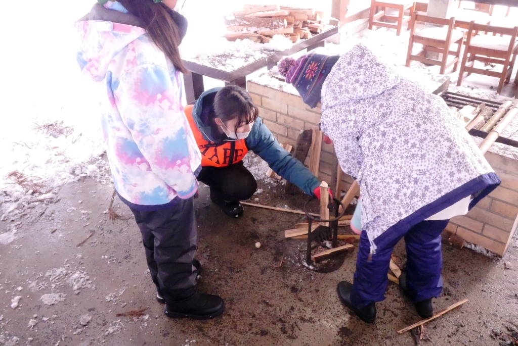 いよいよ冬の教室がスタートしました。最初のプログラムは「薪割りと焚火体験」です。今日初めて会った仲間たちと協力して、薪割りにチャレンジしました。緊張していた子ども達も、焚火で作った焼きりんごを食べる頃には、打ち解けられた様子です。今日からの3日間、この川場村の自然を通して、仲間たちとの絆を育んでいきましょう。