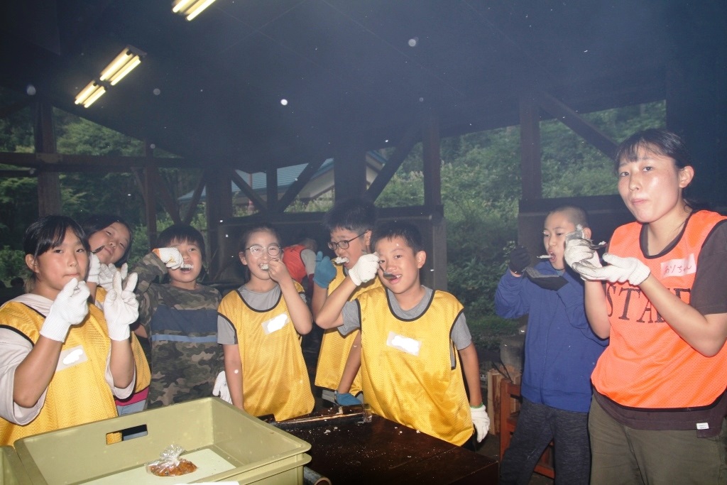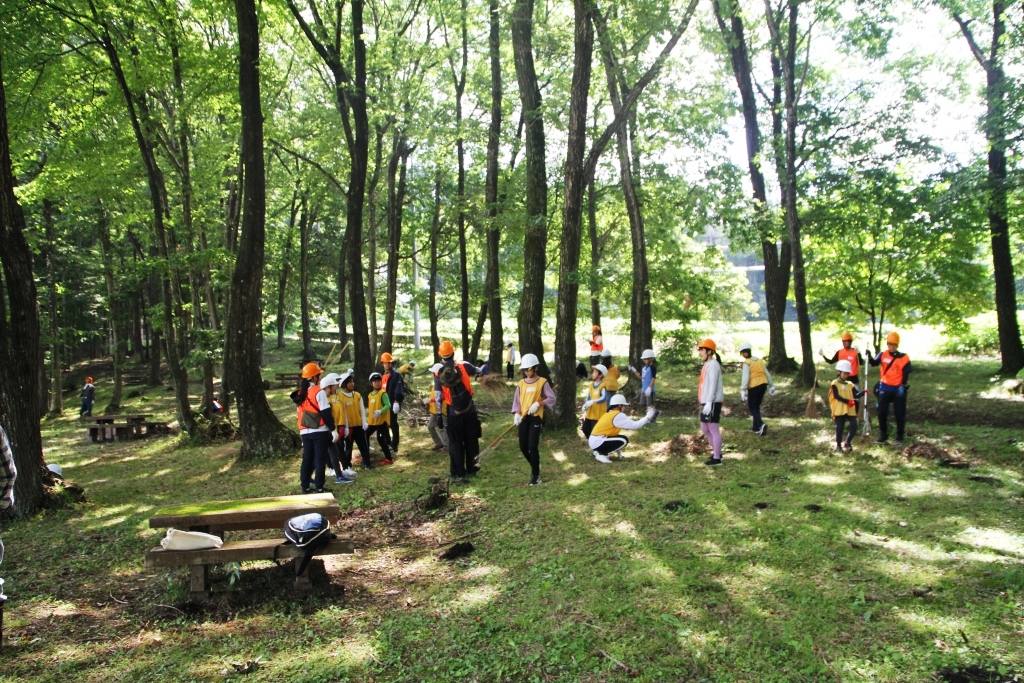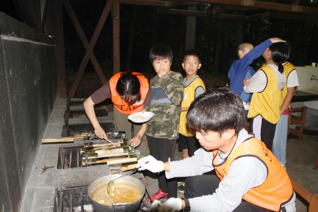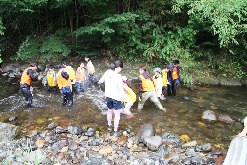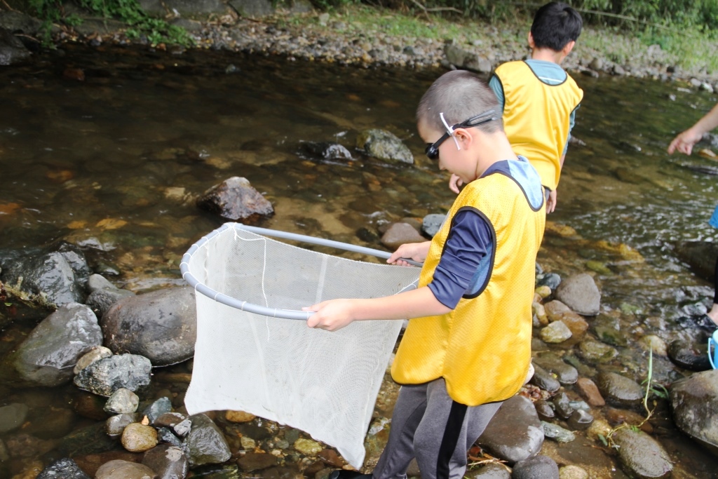 2日目の活動は、雑木林の清掃からスタートです。この雑木林は、地元の方々が管理していますが、枯れ枝を拾ったり、落ち葉を清掃したりと、管理作業のお手伝いをしました。そして、予定を繰り上げて、待ちに待った川遊びの時間。川場の夏と言えば、やっぱり川遊びですね。今回は網を持って魚とりにもチャレンジしましたが、とても立派なカジカを捕まることが出来ました。これも水がきれいな証拠ですね。さらに今日は、竹を活用した飯盒やカレー作りなど、盛りだくさんの内容でした。竹飯盒は失敗もあったけど、それも良き経験であり、良き思い出になったことと思います。そうした経験により、日毎に皆さんが成長しているように感じられます。
