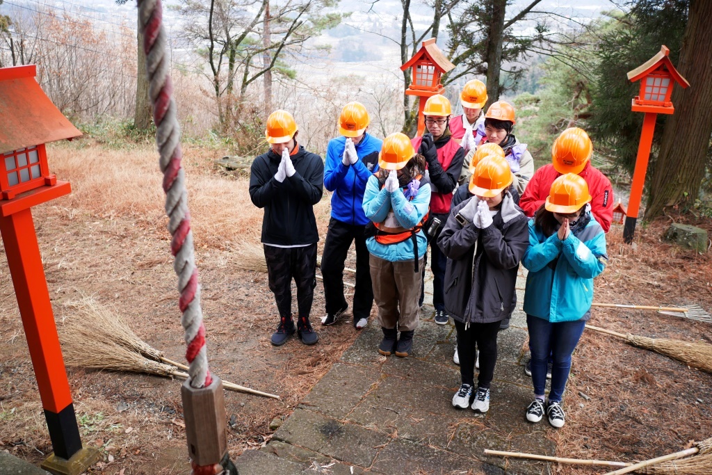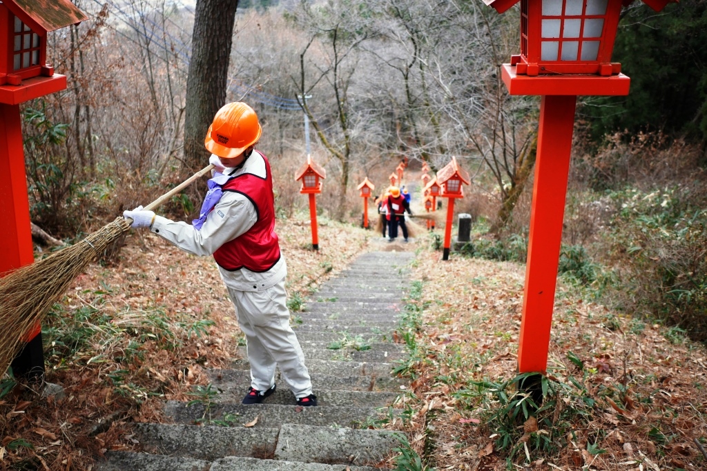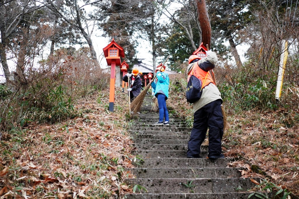 待ちに待った「冬の教室」がスタートしました。高校生の初日は、道の駅「田園プラザ」付近の後山(うしろやま)周辺での活動です。後山にある虚空蔵堂には、地元の人が初詣に訪れますが、この時期は御堂や石段に落葉などが散らばっています。そんな場所を、高校生のパワーで綺麗に清掃しましたので、これでお正月を迎える準備は万端です。里山を楽しむだけでなく、地域の役に立った皆さんは、とても頼もしく感じます。