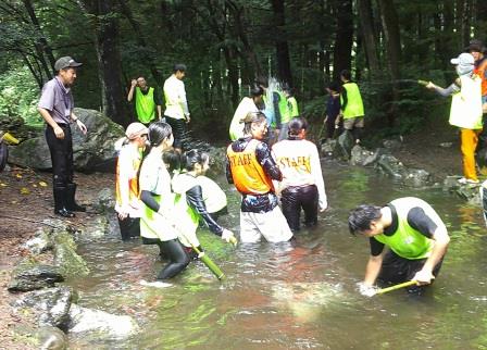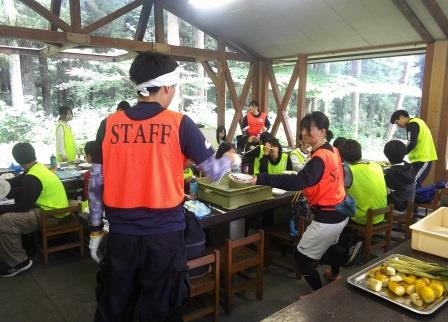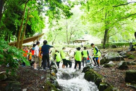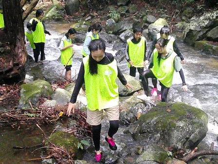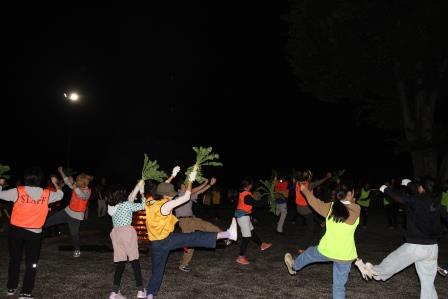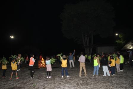 2日目までは、村内で活動し地元に貢献してきた中高生ですが、3日目は、竹林整備をした際の竹を活用して水鉄砲を作りました。その後には、自作の水鉄砲を使って元気いっぱいに川遊びを楽しみました。夏の教室も、あっという間に最終夜となり、仲間と過ごす時間もあとわずかです。こどもやリーダーの出し物とキャンプファイヤーで盛り上がり、これまでの活動を振り返りました。