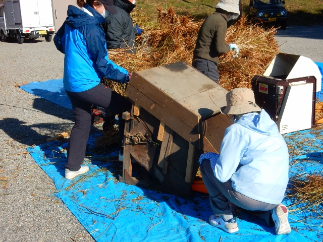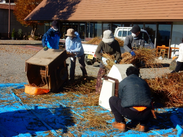 今回は、収穫したそばの脱穀・選別作業を行いまいした。昔ながらの足踏み脱穀機やトウミなどを使って作業を行いました。今年は、例年に比べ収穫量が多く、大変な作業でしたが、大きなバケツ3つ分も収穫できました。頑張りの成果は収穫量に表れていますね。