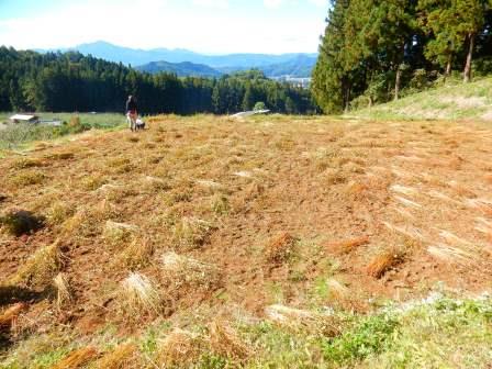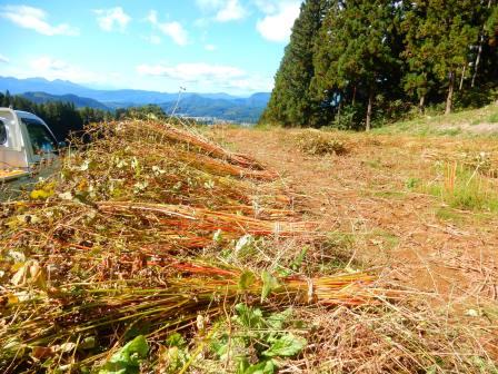 ハゼ掛け 収穫の様子 刈取り後の様子 ハゼ掛けの為に結束したそば
