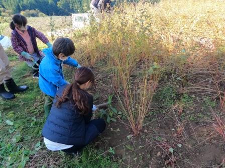 今回は、そばの「刈取り」と収穫したそばの「乾燥」を行いました。乾燥は、ハッテ掛けをし天日干しを行いました。参加者の皆さんは、黙々と収穫してくださり、あっという間に収穫できました。畑一面の刈取りが終わった後の達成感は格別だったと思います。