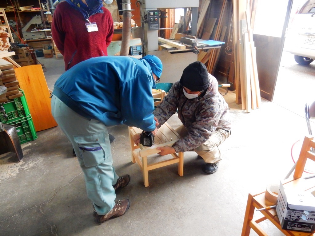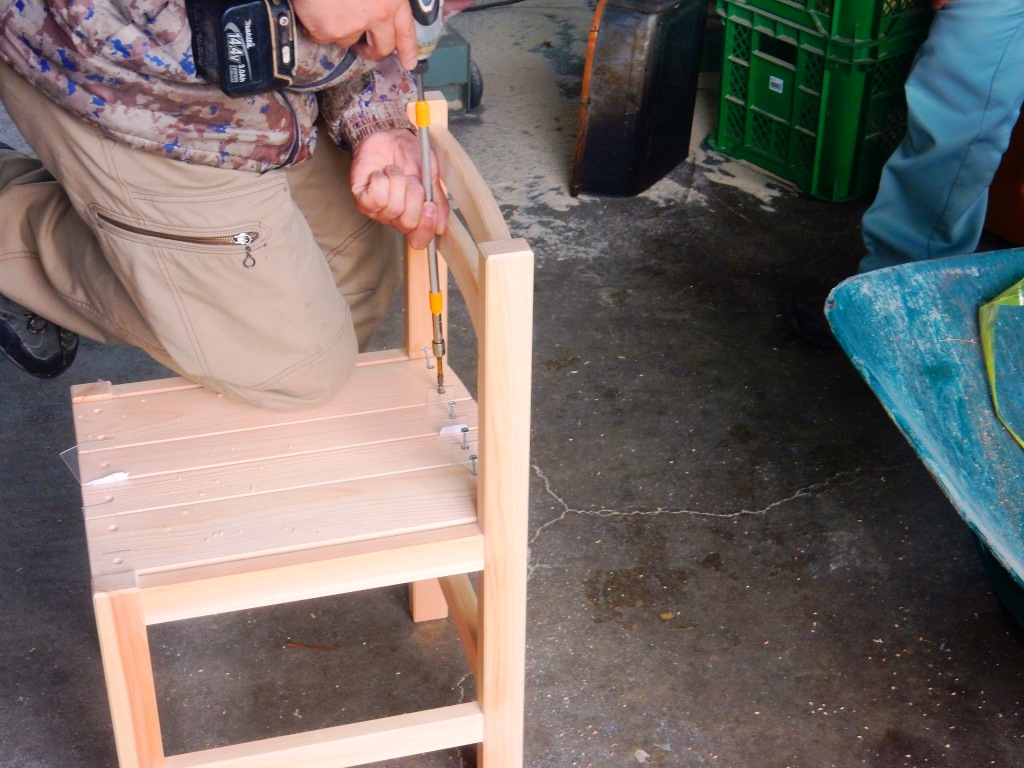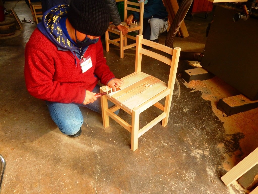 前回でイスの骨組みが完成したため、今回は『座面の加工・取り付け』です。木裏・木表など、木の使い方も学びながら板を加工し、ようやくイスの形に仕上がりました。そして、次回最終回には、『研磨』『塗装』を行い、完成となりますが、早くもその座り心地を確かめていた皆さん。ご家庭で使える日が待ち遠しいですね。
