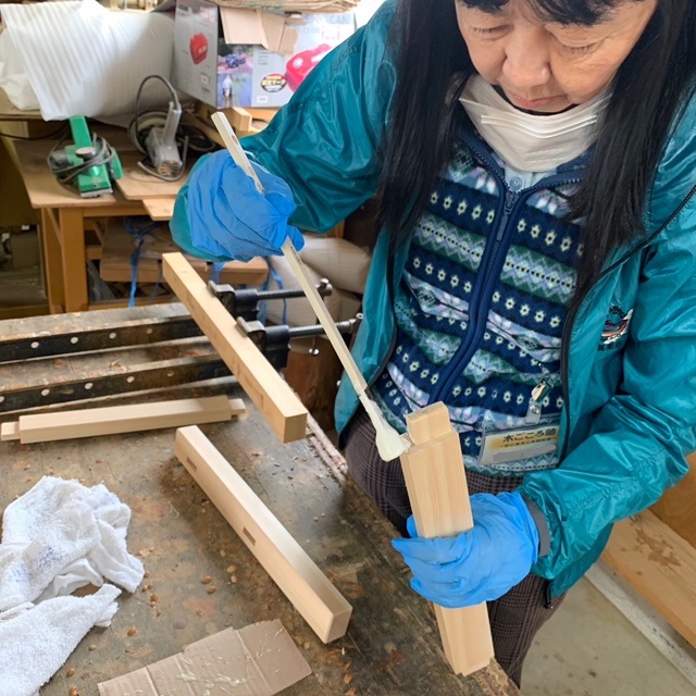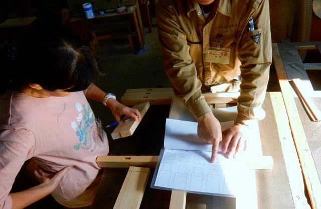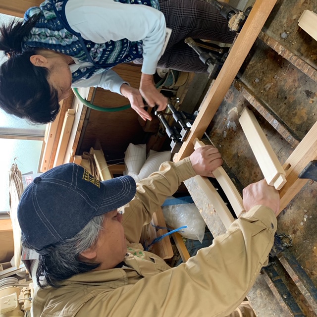 途中川場村で行われていた「川場村文化祭」を見学しつつ、2日間で計4本の木材加工を行いました。これを以前作ったホゾ穴と組み合わせると一気に椅子の雰囲気を感じられるようになりました。
