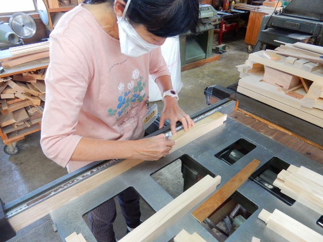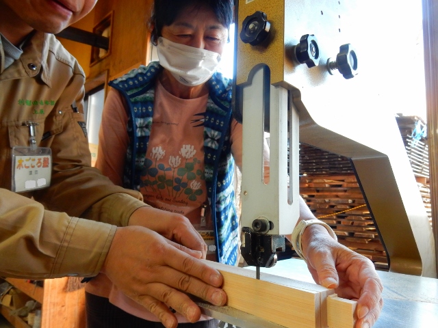 今回は、「ホゾ先づくり」を本格的に行っていきます。手道具だけでは時間がかかってしまうので、森林組合にある本格的な木工機械を使用しての作業となりました。