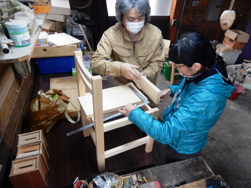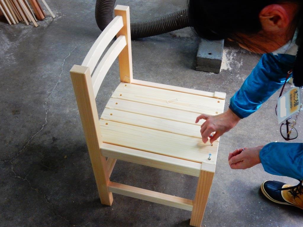 これまでの加工で、イスの骨組みが完成しましたので、今回は「座面」の加工です。ここまでくると完成も間近となり、加工にも力が入ります。そんな中ひとつずつ丁寧に加工を進め、これまで手掛けてきた作品がようやく形になりました!