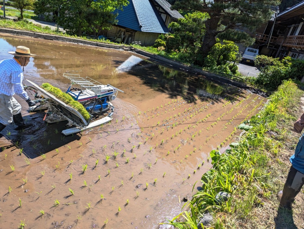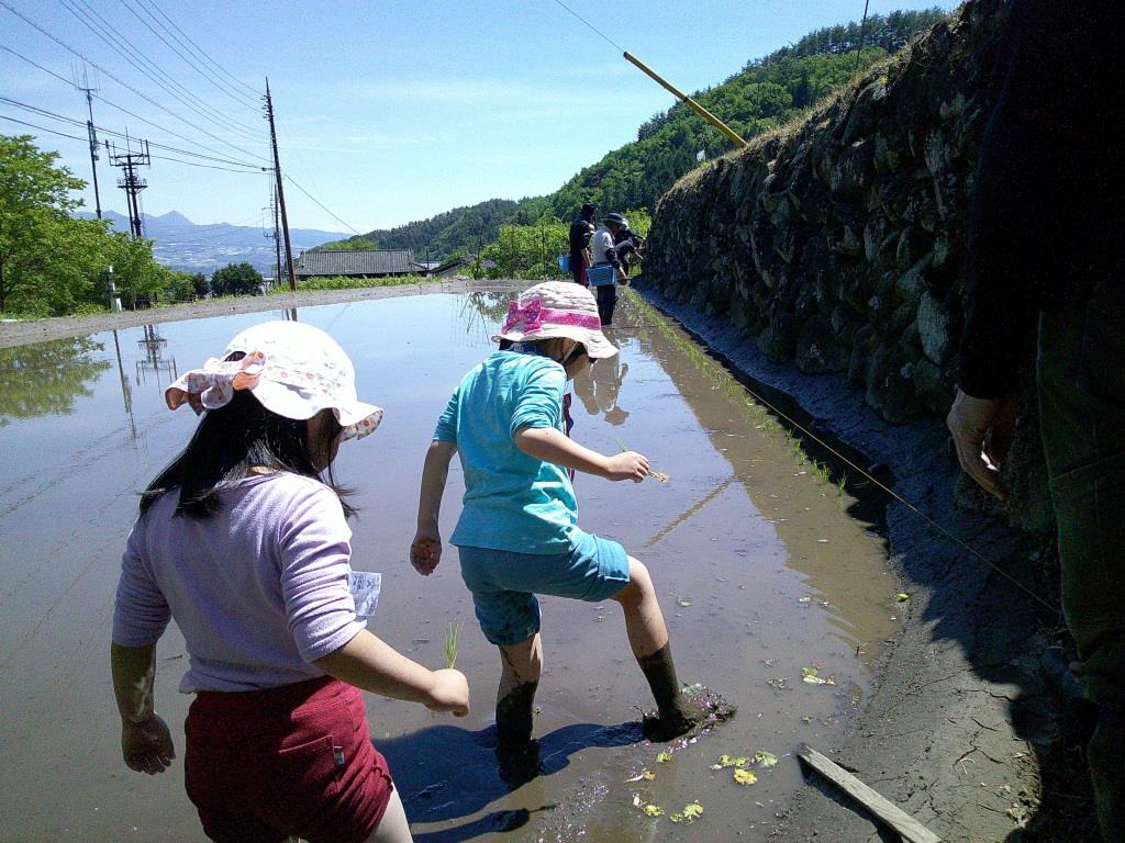 今回は天気にも恵まれ、田んぼの中に足を入れると温い感触が伝わってきました。はじめはおっかなびっくりで田植えをしていましたが、終える頃には慣れた様子で手早く苗を植えることができました。