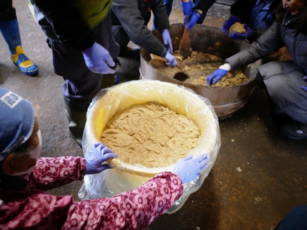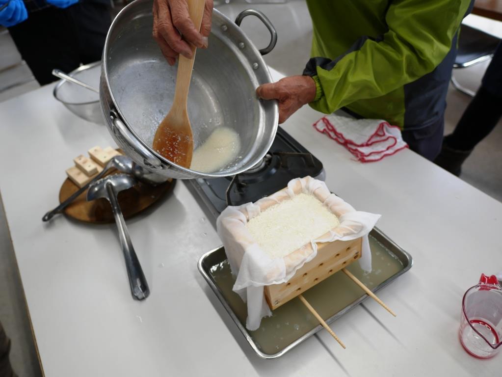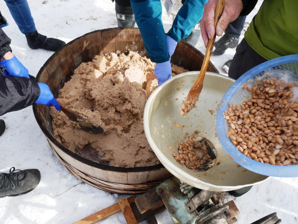 また、味噌づくりでは、さまざまな工程を経て仕込み作業を行い、じっくりと熟成させる期間に入ります。この手作りならではの美味しい味噌を味わう日が待ち遠しいですね。そして、豆腐づくりの後には、講師の「手作り納豆」を試食し、手軽ながらも風味豊かな納豆を味わうことができました。
