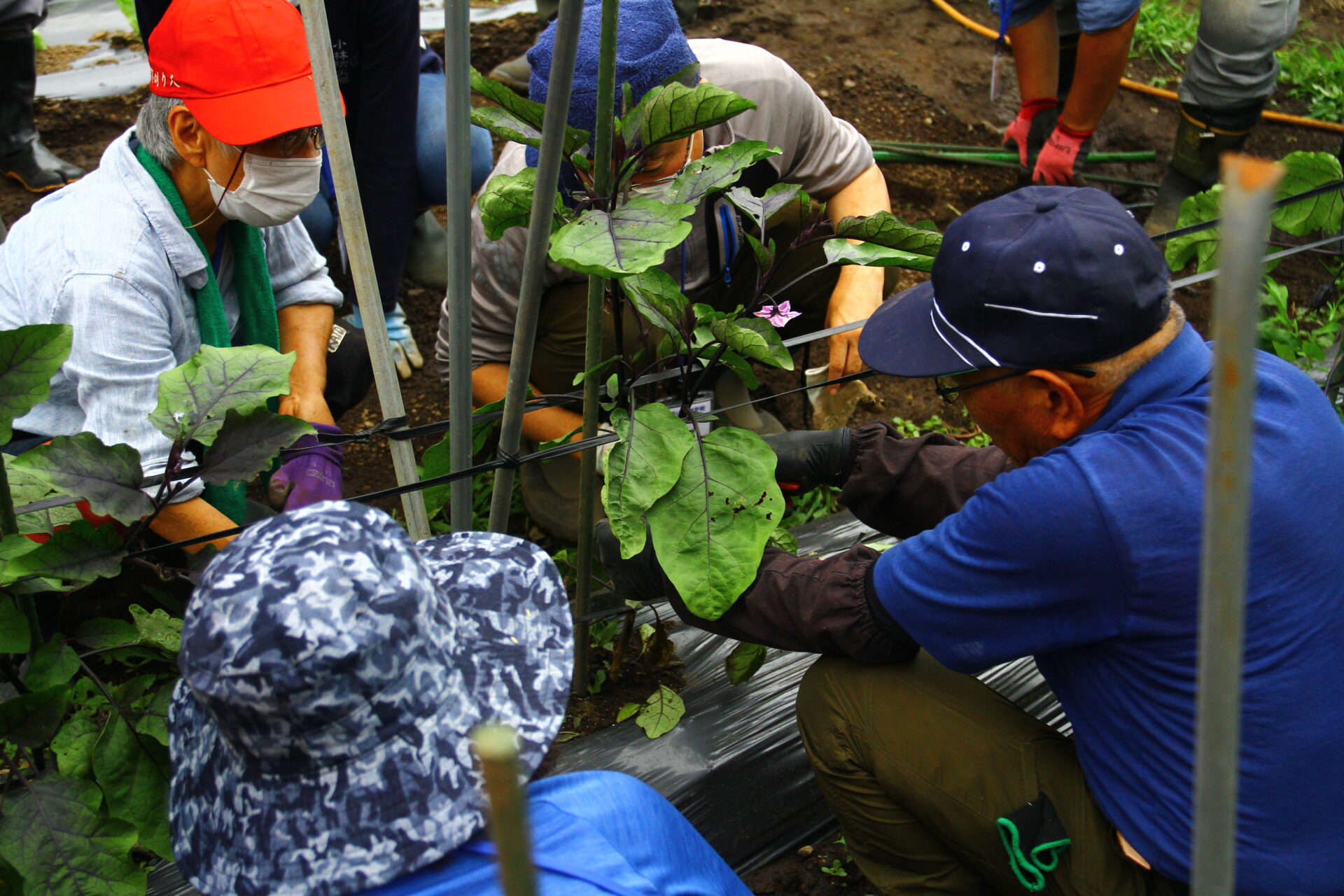 今回の教室では、「ブロッコリー、カリフラワー、ニンジン、チンゲンサイ」の作付け、また、栽培管理では「キュウリ、インゲン、ナス、ピーマン、トウモロコシ、サツマイモ」の誘引や整枝剪定、除草の実践講義を実施しました。いよいよ、今回より収穫時期を迎え「ニンジン、ジャガイモ」が収穫となりました。