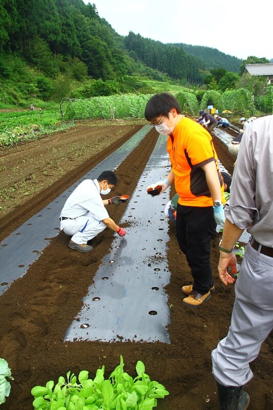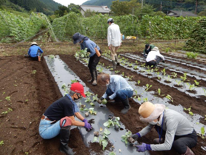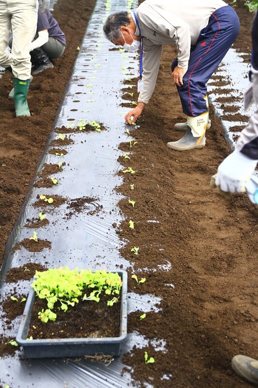 今回の教室では、「ダイコン、ハクサイ、レタス、キャベツ、ホウレンソウ、カブ」の作付け、また、栽培管理では除草、ネギの追肥土寄せ、トマト製枝剪定誘引を実施しました。「ナス、ピーマン、トマト、インゲン」は収穫となりました。また、収穫期を終えた「キュウリ」の片付けを行う等盛り沢山の教室となりました。