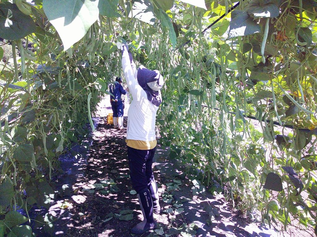 第5回の農業技術教室では、待ちに待ったトウモロコシやピーマン、インゲンといった夏野菜の収穫ができました。そして、休憩の際には畑で育てていたスイカを頂き、疲れもリフレッシュできました。