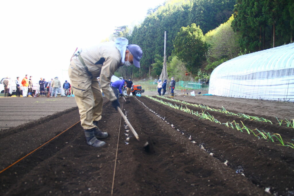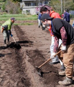第1回、農業技術教室では「土(畑)づくり」の講義から始まり板鍬の使用練習、実技講師には地元農家の方々を迎え川場流儀の植え付け方法を2日間にかけて学んでいただきました。また、五十嵐塾長より「農業生産の現状と課題」についての講座もあり、充実した2日間となりました。
