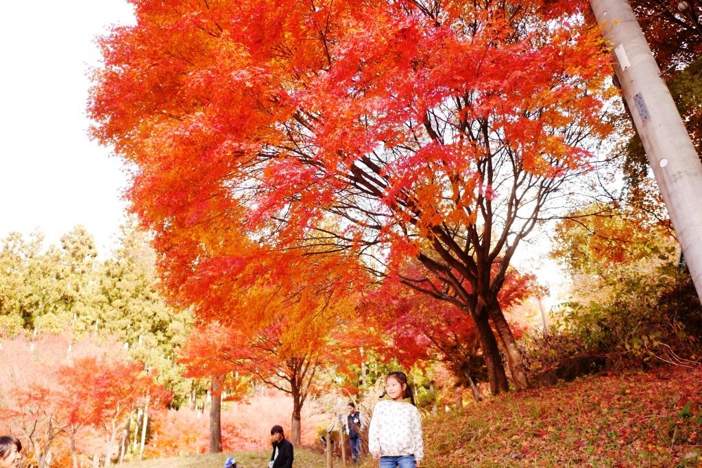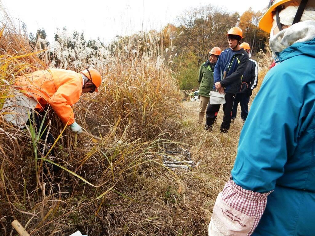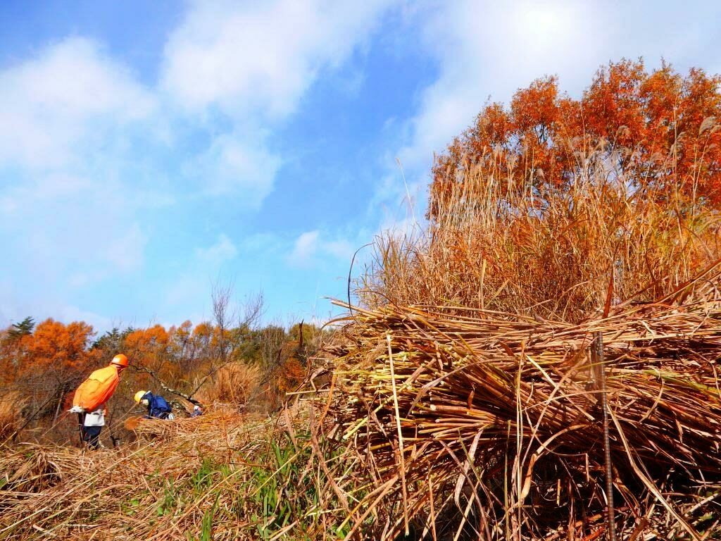 人がどこにいるか分からないほど生い茂っていた原っぱも、作業が進むにつれて見通しが良くなっていきます。作業後の開けた景色に達成感を感じるとともに、周辺の色鮮やかな紅葉もお楽しみいただきました。