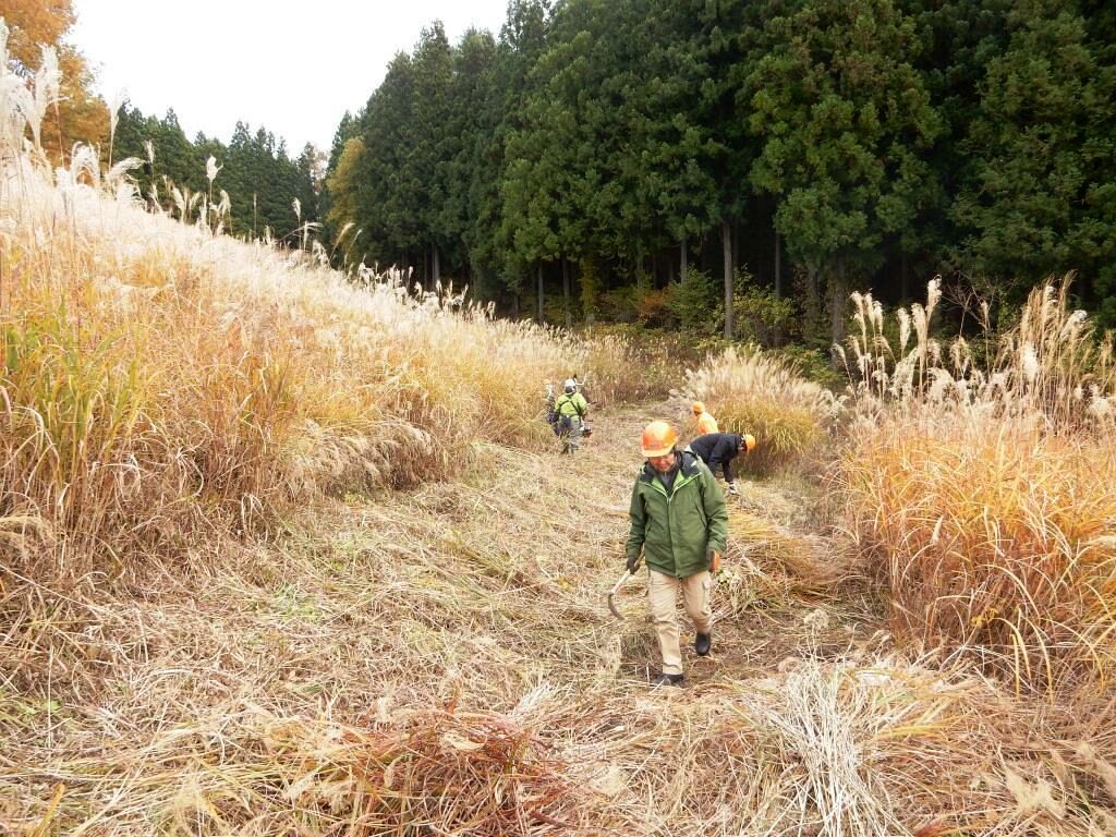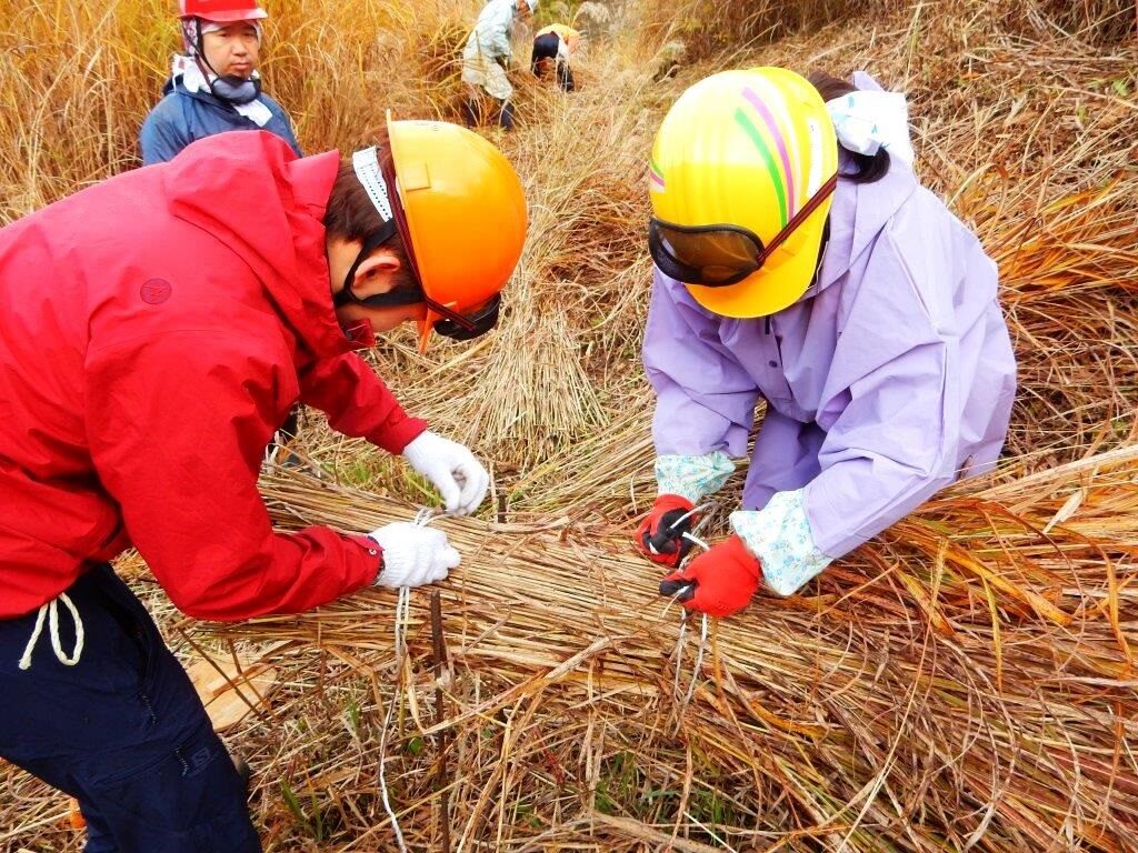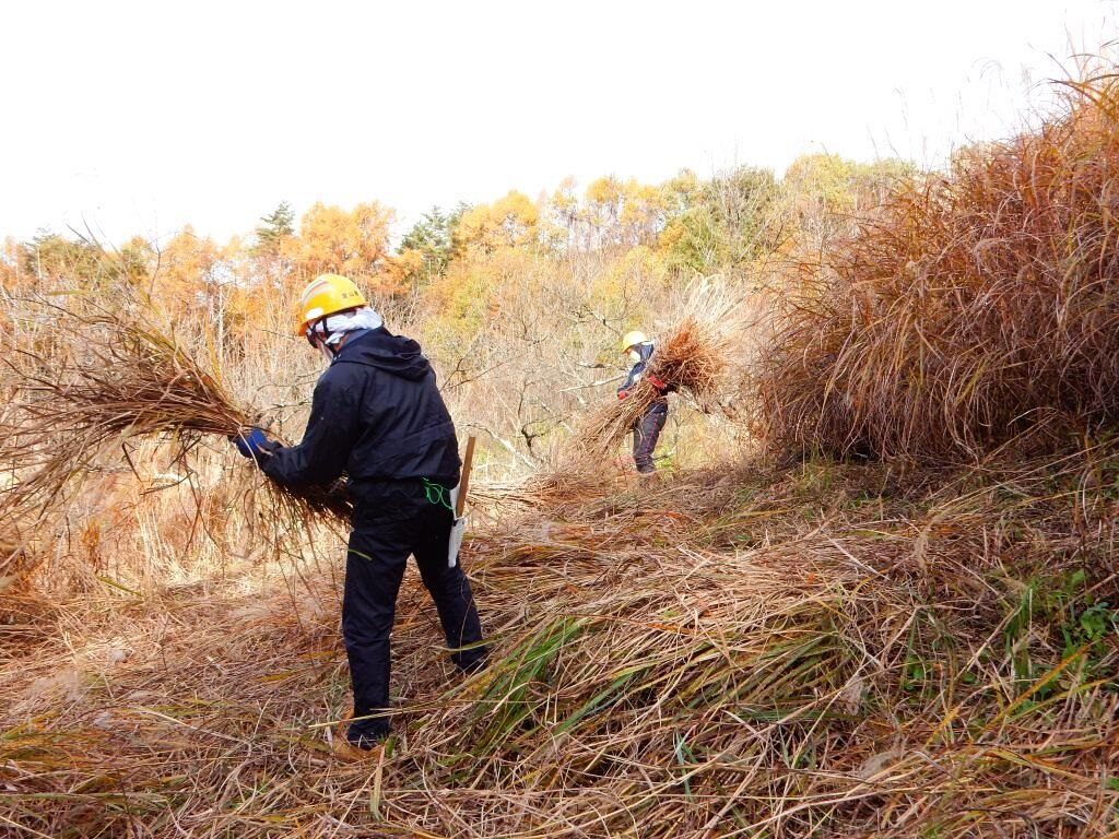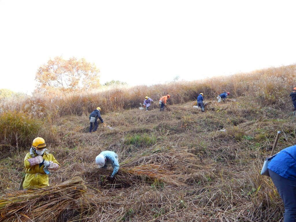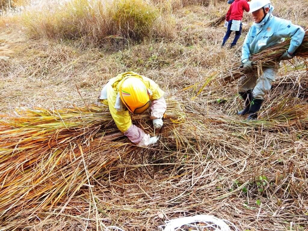 里山塾も収穫の秋を迎えました。茅葺き屋根の材料となるススキを収穫する「茅刈り」が、今年度最後の「おとなの里山コース」となります。