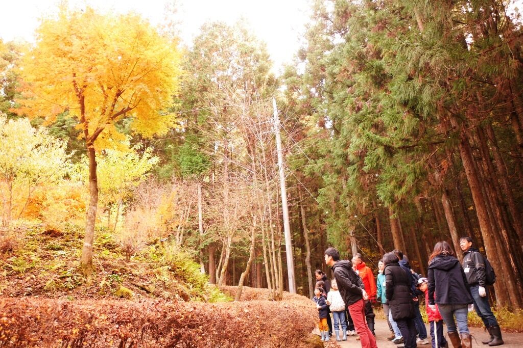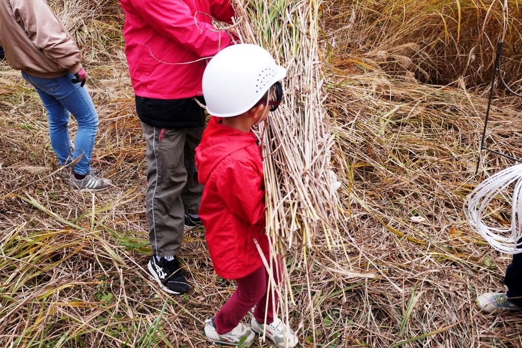 今年は例年より季節が遅かったのですが、そのおかげでビレジ周辺の紅葉がピークを迎える中での開催となりました。今回は、「おとなの里山コース」だけでなく、親子の皆さんも一緒に里山資源の収穫です。ススキの原っぱには、たくさんの動物の痕跡がありますが、中でも絶滅が心配される「カヤネズミ」の巣も発見。毎年ススキを収穫して、茅場として維持されているからこそ、草原性の生き物が守られているわけですね。色鮮やかな里山を散策したり、焚き火や焼き芋も楽しんだりと、この時期ならではの川場を満喫していただきました。