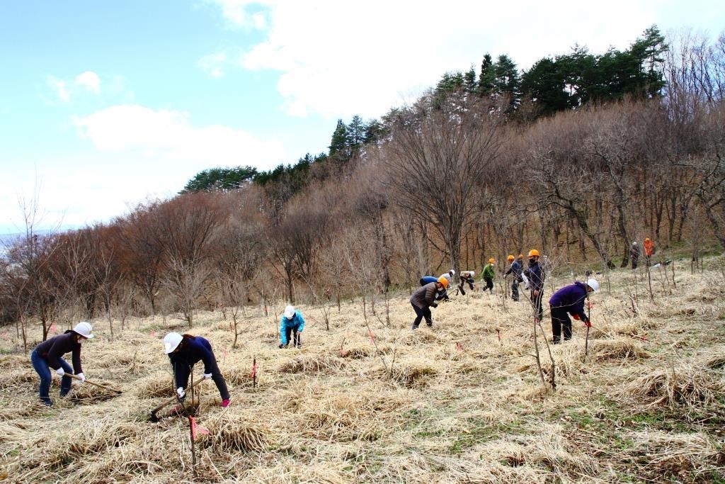 ビレジ周辺では、例年より早く桜が満開を迎える中、今年度の「おとなの里山コース」がスタートしました。初日は生憎のお天気でしたが、里山のお話を聞いたり、手道具を手入れしたりと、悪天候ながらも里山の知恵や技を体験していただきました。そして、2日目には雨も上がり、澄み渡る空気の中、「植林」作業を行いました。皆さんが植えた木々は立派に育ち、たくさんの生き物にとって、かけがえのない場所になると思います。