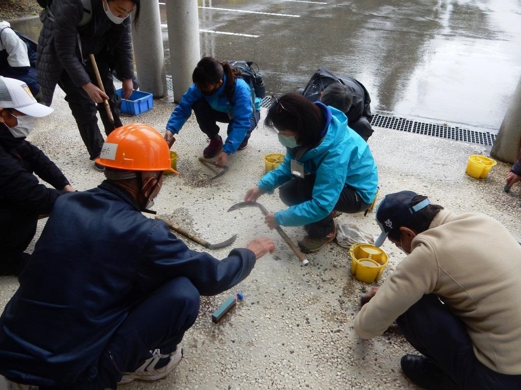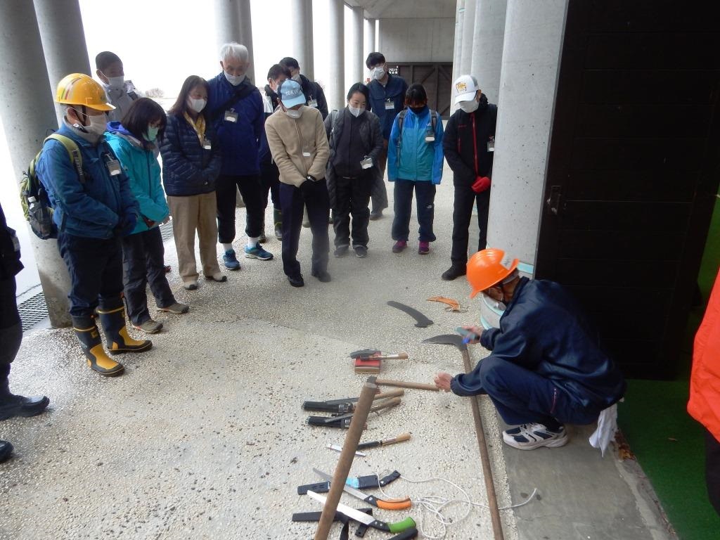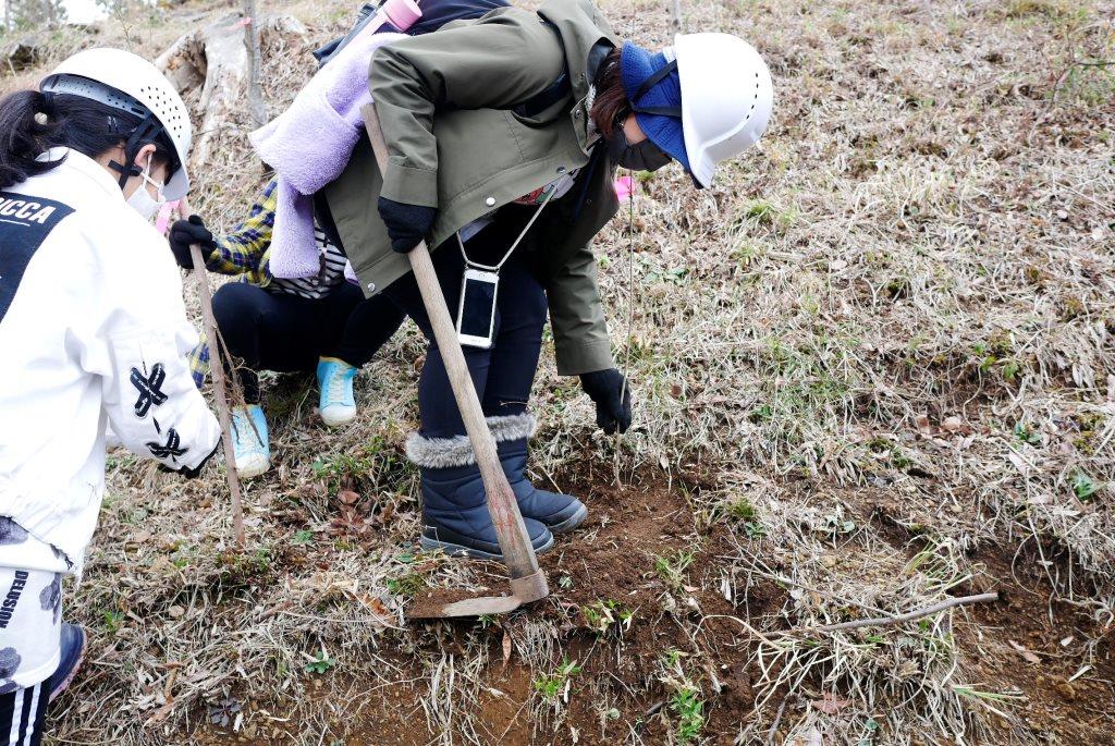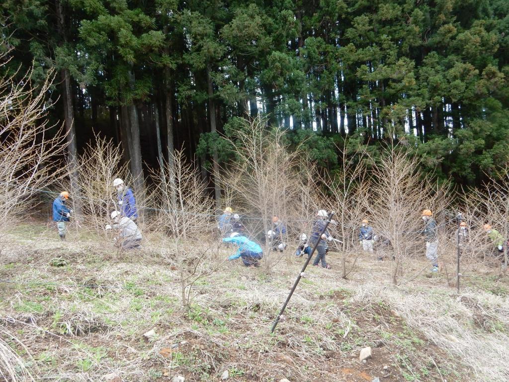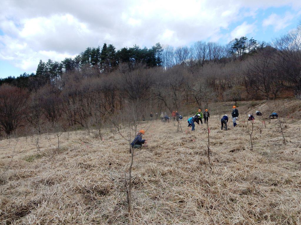 ビレジ周辺では、例年より早く桜が満開を迎える中、今年度の「おとなの里山コース」がスタートしました。初日は生憎のお天気でしたが、里山のお話を聞いたり、手道具を手入れしたりと、悪天候ながらも里山の知恵や技を体験していただきました。そして、2日目には雨も上がり、澄み渡る空気の中、「植林」作業を行いました。皆さんが植えた木々は立派に育ち、たくさんの生き物にとって、かけがえのない場所になると思います。