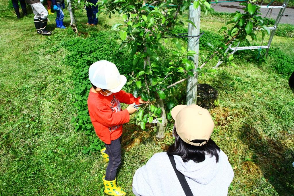初日はお天気に恵まれなかったものの、お天気が回復した2日目には村内へ出かけ、摘果作業に追われるリンゴ農家さんのお手伝いをしました。どれを切るのか難しかったけれど、その分農家さんの苦労と、食べ物のありがたみを感じていただけたのではないでしょうか。