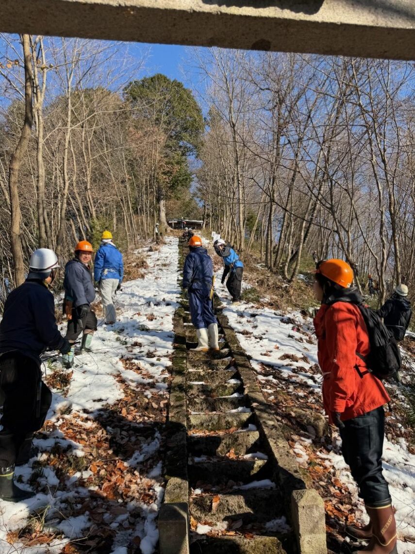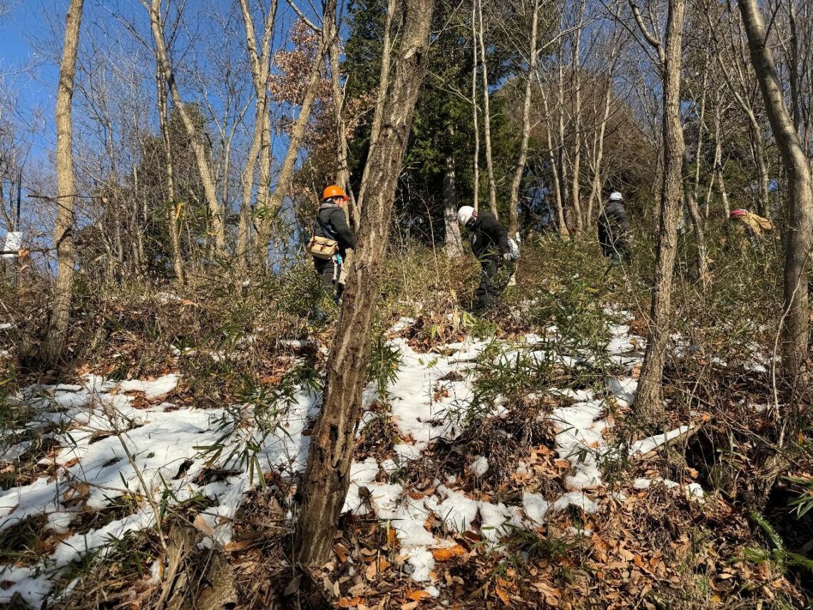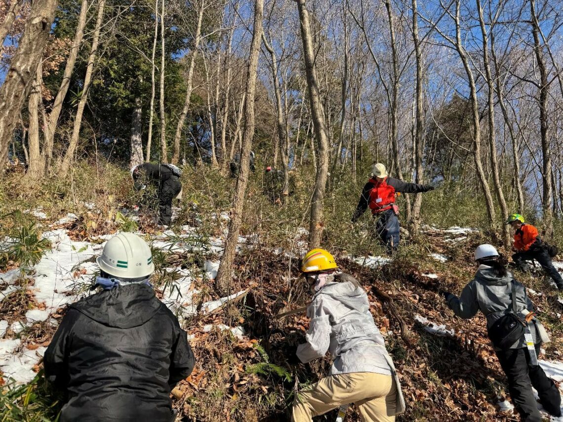 今年度の最終回は、地域の方々との協働作業を行いました。里山塾では、毎年地元の方々と一緒にカラマツ林の手入れをしておりますが、今回は雪の影響により、てんぐ山のお堂周辺での作業となりました。足元の安定しない急傾斜地での作業となりましたが、綺麗になり地域の方からも感謝のお言葉をいただきました。また、夜の交流会では作業の労をねぎらいながら親睦を深めつつ、今後の交流について夢を語り合う場面もあり、改めて交流の大切さを実感しました。